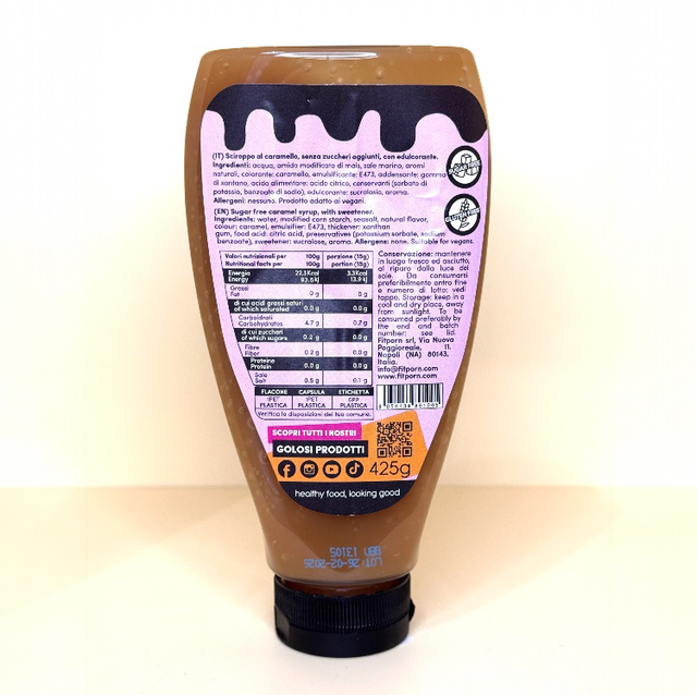 Sciroppo senza zuccheri al gusto di caramello, con edulcorante.
